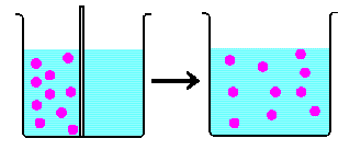 この状態で仕切り板をはずすと、砂糖分子が分散して、一定濃度の砂糖水が出来ますね。