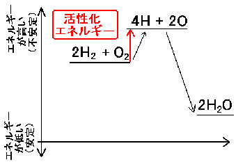 化学反応を起こすには、「活性化エネルギー」の山を越えて行かなくてはならないのですね。