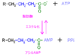 反応の第一段階は、脂肪酸が直接ATPと結合する反応。