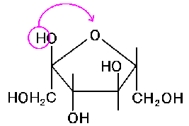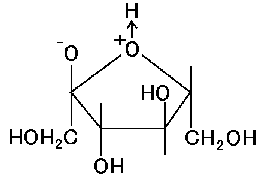 そうしますと、五番炭素が電子過剰になりますから、環を構成する酸素との間の共有結合を、酸素側に電子を二個とも与える形で切断します。