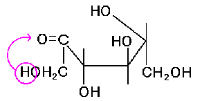実は、この反応、つまり「炭素鎖末端で隣り合う水酸基とカルボニル基は、入れ替わる事ができる」という事は、フルクトースの場合に限りません。一般的に成り立つ反応です。