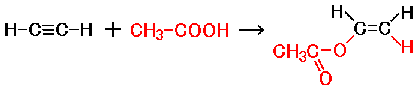 アセチレンに水を付加すると、ビニルアルコールではなく、酢酸が生じてしまうので、水ではなく酢酸を付加してやります。
