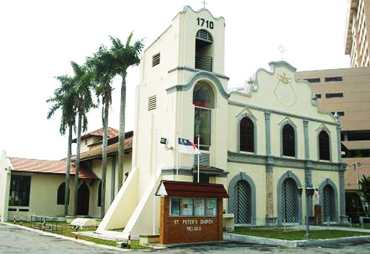 Constructed in 1710 under the Dutch administration, the church is the oldest Catholic church in Malaysia. this was the very first church built to celebrate the restoration of Roman Catholic religion in Melaka during the Dutch Reign (1641- 1824). Its front and decorative is a mix of both eastern and western architecture. Its bell was delivered from Goa in 1608. Earlier, under the Dutch Reign, all Portuguese Catholics were ordered to give up their faiths. Churches were destroyed and faithful Catholics have to flee to the Melaka's suburbs and perform their religion practice in great secrecy. All these are done to avoid being prosecuted by the Dutch. St.Peterschurch was built on a land donated by a Dutch gentleman named, Maryber Franz Amboer.
