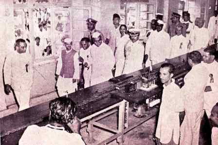 Dr.Rajendra Prasad, the President of India, Shri Lal Bahadur Shastri, Minister for Railways, Shri Mohan Lal Sukhadia, Chief Minister of Rajasthan, Maharana Shri Bhagawat Singh of Mewar and other VIPs are seen visiting the Transportation Model Room.