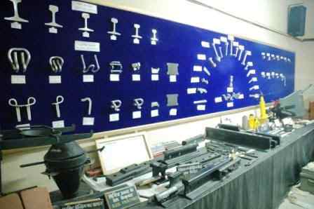 The Engineering Model Room consisting of various Models and Charts covering different aspects of Permanent Way and Bridge Engineering, is one of the most interesting Model Rooms. This Model Room also has Hydraulic Track Jack, Hydraulic Sleeper Spacer, Toe Load measuring device, Hydraulic Double Action Weld Trimmer, Hydraulic Rail Tensor, Rail Hole Drilling Machine, Railing Grinding Machine etc.