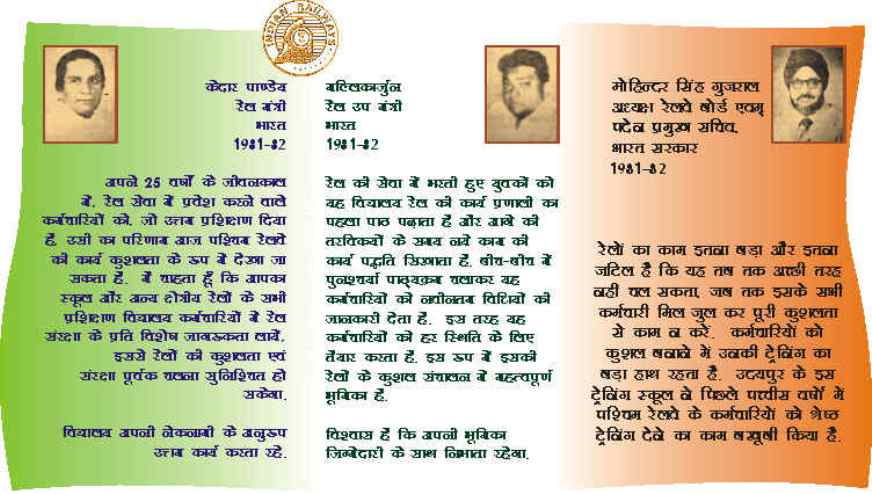 This Training School plays an important role where railwaymen not only from the Western Railway, but also from other Zonal Railways and even from Foreign countries, come to learn the basic techniques of railway working. The institutionalised training like the one in the Zonal Training School also helps in developing an esprit-de-corps. With 25 years of experience to its credit, the school assumes an added importance in the present day context of ensuring that all the staff concerned with safety of train operations, whether directly or indirectly, are imparted full knowledge of the safety requirements and made to imbibe the spirit of dedication and devotion.