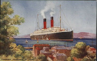 | RMS Franconia (I) At Fiume -- Official Cunard Line Card | ||||||||||||||||||||||||||||||