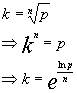 Here we need to find k, the nth root of p. i.e.,