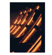 strains. Bending and StraighteningEqually important to strand containment and guidance from the vertical to horizontal plane are the unbending and straightening forces. As unbending occurs, the solid shell outer radius is under tension, while the inner radius is under compression. The resulting strain is dictated by the arc radius along with the mechanical properties of the cast steel grade. If the strain along the outer radius is excessive, cracks could occur, seriously affecting the quality of the steel. These strains are typically minimized by incorporating a multi-point unbending process, in which the radii become progressively larger in order to gradually straighten the product into the horizontal plane.