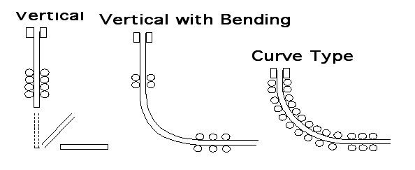 rodillos que van curvándolo para dejarlo en posición horizontal al terminar el