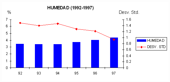 Los beneficios obtenidos se pueden observar claramente en las fig´s. 4 y 5, donde la desviación estándar se ve disminuida en mayor grado a partir de 1996 en el Carbón Fijo y desde 1995 en el Azufre.