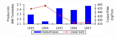 El Coque Rate se vió incrementado en 1994 debido al paro del Alto Horno No. 5 para su Rehabilitación Mayor.