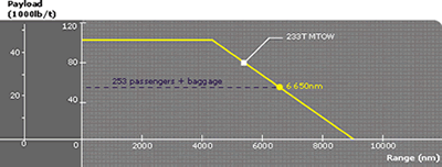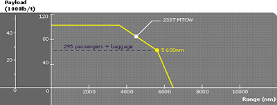 models to best satisfy their varied fleet development needs. The "range curves" with baggage allowance and full fuel reserves allowance is made for airways routings instead of the most direct routings and for headwinds for that particular region; it is because these winds differ from route to route that the "curves" are not in fact perfect circles. |