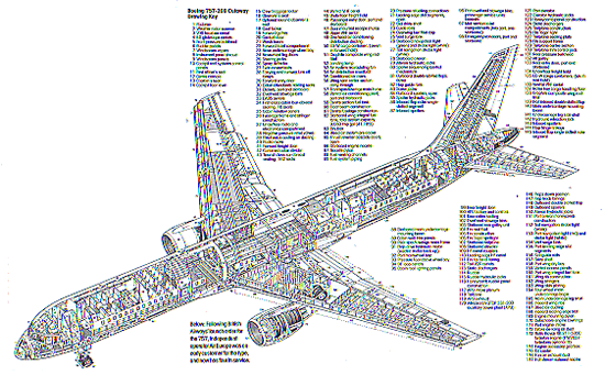 There are about 626,000 parts in a 757. About 600,000 bolts and rivets fasten those parts together. The length of all wires in the twinjet is about 60 miles (100 kilometers). |