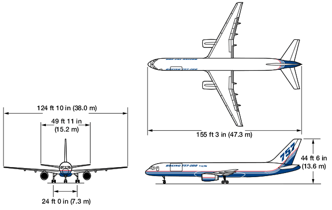 The surface area of a pair of 757 wings is 1,951 square feet (181 square meters), about the same as the floor space of a three-bedroom house in the U.S. |