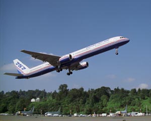 The Boeing 757-200 is a twin-engine short-to-medium-range jetliner. It incorporates advanced technology for exceptional fuel efficiency, low noise levels, increased passenger comfort and top operating performance. The 757 offers other virtues as well, including great versatility by reducing airport congestion. The 757 can fly both long- and short-range routes and its broad use effectively lends itself to "hub-and-spoke" planning. Designed to carry 200 passengers in a typical mixed-class configuration, the 757-200 can accommodate up to 228 passengers in charter service, putting its capacity between that of the Boeing 737-900, and the 757-300. |