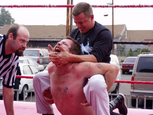 | Damien Frost with a big camel clutch on Carl Peterson | ||||||||||||||||