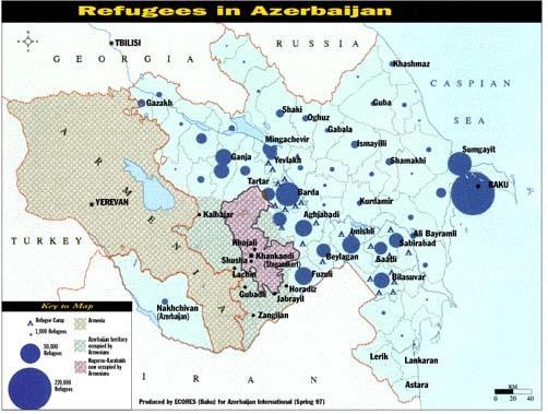 | Since 1993, tens of thousands of Azerbaijani refugees have lived in tent camps in central Azerbaijan. Nearly 1 million refugees had to flee the Armenian military occupation of their lands. | ||||||||||||||||||||||||