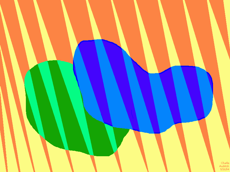 Now I gotta tell ya, I have no idea what this is. But the blue thing is opaque to the green thing, but they're both translucent to the background... This one has a minimalist simplicity that I think is unusual for me. I thought I should add something else, but it just didn't feel right. It was already done.