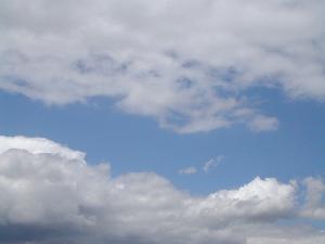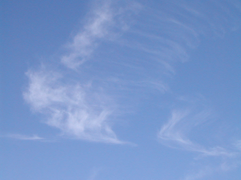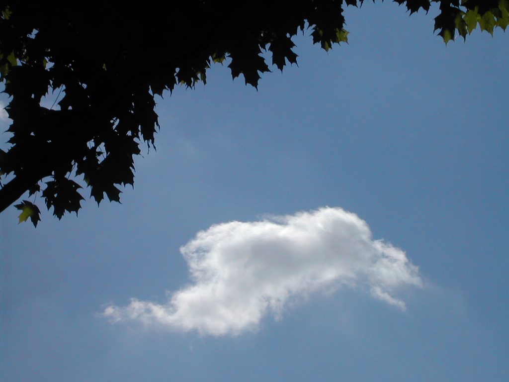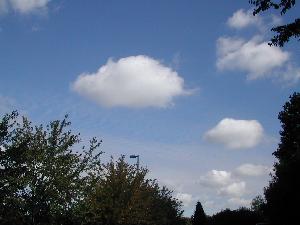 In August, September, and October 2004 there were many beautiful clouds around Indianapolis. Astoundingly beautiful clouds. I started taking pictures of them, even knowing pictures never do clouds justice. Day after day after day I looked at the clouds and took pictures. I began to think of clouds as gifts from the sky. I got so excited about taking pictures of clouds that I started taking my camera with me in my car everywhere. I took pictures of clouds from my driveway, from my car, from the parking lots of stores and the parking lot at the office. Often I'd drive to the top of the parking garage just to get a better view of the sky. I became so excited about clouds that every day when I went outside I would look up and think "What gifts hath the sky today?" I looked forward to seeing clouds and enjoyed them thoroughly. Now we're into the seemingly perpetual gray sky of Indiana winter. I'm glad I have the pictures, I put them into my screen saver! I hope clouds like these return next fall!