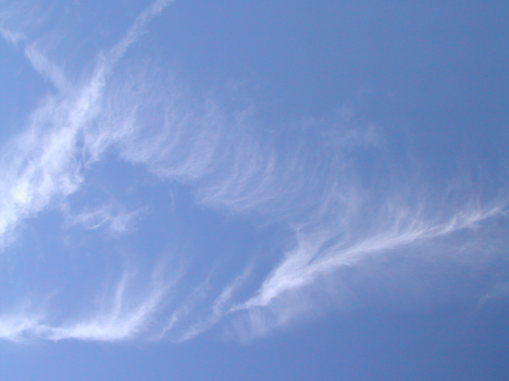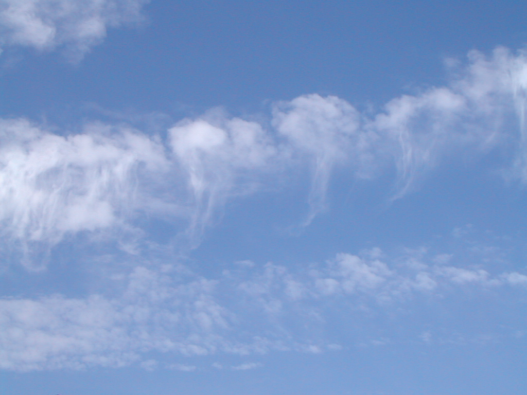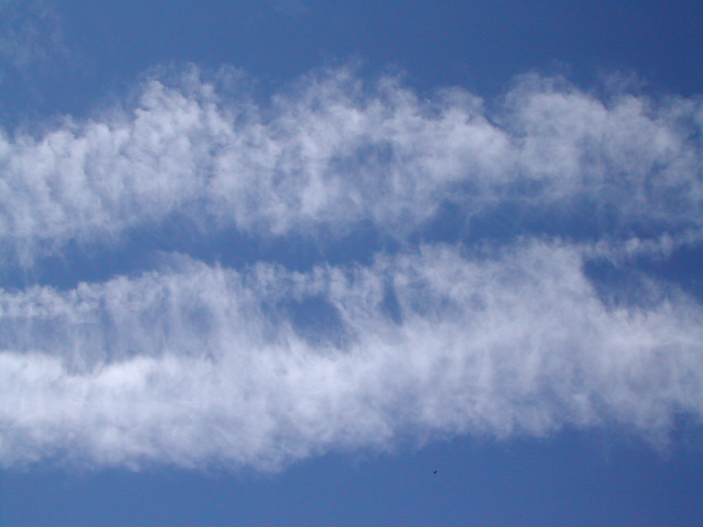 The sky is a great Tibetan Buddhist metaphor for Emptiness, the teaching that all things are empty of any essential reality, that there is no essential difference between any two things. And yet all things spring forth from Emptiness. The sky appears to be empty, but such wonderful, elaborate things are always springing forth from it. Clouds, the moon, the sun, birds, and today airplanes. If you suspend rational thinking, you can almost believe that all these things do spring forth from the empty sky. It's a fun idea to play with. Click each thumbnail for the full sized, 1024x768 picture, the largest is 372k. Roll over the thumbnails to see my comments, if any.