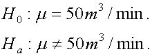 จะได้ค่า -Za/2 = -1.96 และค่า Za/2 = 1.96 ดังนั้นช่วงที่ยอมรับ H0 : m = 50 m3/min. คือ