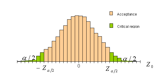 เป็นจริง ก็แสดงว่า E( นั่นคือเราจะปฏิเสธสมมติฐานหลัก H0: m = m0 เมื่อ Z0> Za/2 หรือ Z0< -Za/2 และเราจะยอมรับ H0: m = m0 ถ้า