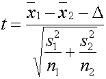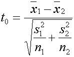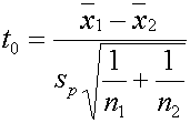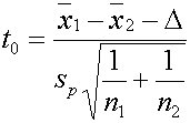 ซึ่ง t คือตัวทดสอบสถิติของ กรณีการทดสอบค่ากลางของสองกลุ่มตัวอย่าง (ประชากร) ในกรณีที่เราถือว่า D = 0 ดังนั้น จะได้ว่า