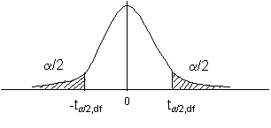t- Distribution ที่จะใช้สำหรับทดสอบนี้ก็คือ ผลต่าง m1= m2 ซึ่งจริงๆ ควรจะเท่ากับ 0 เราถึงจะยอมรับสมมติฐานหลัก แต่เราใช้หลัก Confidence interval ก็จะได้ว่า ผลต่างที่ไม่เท่ากับ 0 แต่น้อยหรือมากกว่า ในระดับหนึ่งภายใน Interval นั้นเราจะยังยอมรับสมมติฐานหลักอยู่