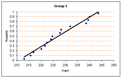 จากกราฟของการทดสอบ Normality test ของข้อมูลทั้งสอง บอกได้ว่าข้อมูลมีการกระจายแบบปกติ (Normal Distribution) จึงสามารถจะเริ่มทำการทดสอบต่อไปได้ ต่อไปก็หาค่าสถิติต่างๆ ของข้อมูล ( Descriptive Summary)