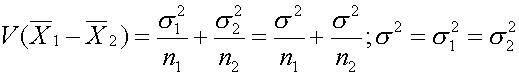 การทดสอบสมมติฐาน ในการทดสอบสมมติฐานเราจะแยกการทดสอบออกเป็นสองกรณี คือ กรณีค่า Variance ของข้อมูลทั้งสองกลุ่มเท่ากัน และกรณีค่า Variance ไม่เท่ากัน กรณี Variance เท่ากัน ( s21=s22) สมมติเราต้องการทดสอบสมมติฐานที่ว่าค่า m1= m2หรือไม่ แน่นอนว่าเราจะรู้ได้ว่าเท่าหรือต่างกันเราสามารถหาจากผลต่าง m1- m2 ถ้าผลต่างเท่ากับ 0 (ศูนย์) ก็บอกได้ว่าสมมติฐานนั้นเป็นจริง แต่แน่นอนว่า ผลต่างนั้นโอกาสจะเท่ากับ 0 เป็นไปได้ยาก แต่บางครั้งความรู้สึกของผู้ที่กำลังทดสอบสมมติฐานจะบอกว่า แม้ไม่เท่ากับ 0 แต่เขาก็ยังจะยอมรับได้ว่า m1= m2 ยังเป็นจริงอยู่ นั่นก็แปลว่า เราจะยอมรับให้ ผลต่าง อยู่ในช่วงๆ หนึ่ง รอบๆ ค่า 0 ในทางบวกและลบ เท่าๆกัน ดังสมการ
