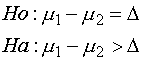 กรณีที่เรากำหนดให้ D > 0 ในบางครั้งผลต่างในการทดสอบสมมติฐาน ของสองประชากรอาจจะไม่เท่ากับ 0 ก็ได้ ยกตัวอย่างต่อไปนี้ ตัวอย่าง ณ โรงงานผลิตชิ้นส่วนประกอบของรถยนต์แห่งหนึ่ง หัวหน้าฝ่ายวิศวกรรมต้องการปรับปรุงการทำงานของเครื่องตัดโลหะขนาดเส้นผ่าศูนย์กลาง 3 นิ้ว จำนวนทั้งหมด 6เครื่อง จะต้องใช้เงินลงทุนประมาณ 300,000 บาท ต่อเครื่อง แต่ผู้บริหารได้กำหนดไว้ว่าให้ปรับปรุงเพียงหนึ่งเครื่องก่อน และ ความสามารถของเครื่องในการตัดโลหะหลังจากปรับปรุงแล้วจะต้องเพิ่มขึ้นอย่างต่ำ 10 % ถึงจะถือว่าคุ้มทุนในการปรับปรุง และจะอนุมัติงบประมาณในการปรับปรุงเครื่องที่เหลือ วิศวกรที่รับผิดชอบจึงทำการเก็บข้อมูลความสามารถของเครื่อง โดยนับจำนวนชิ้นงานที่เครื่องตัดได้ภายในเวลา 1 ชั่วโมง( Unit per hour ) จำนวน 24 ชั่วโมง ( ตัวอย่าง ) ทั้งก่อนและหลังทำการปรับปรุงเครื่องตัดโลหะ ได้ข้อมูลดังต่อไปนี้