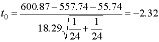 Sp = 18.29 5. หาค่า Test statistic ( t0 ) เมื่อกำหนดให้ D > 0