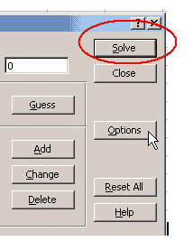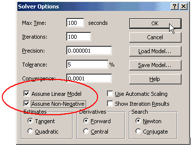 ให้ Click ที่ Assume Linear Model และ Assume Non-Negative จากนั้นให้ Click OK หน้าต่างดังรูปที่อยู่ถัดไปข้างบนก็จะปรากฏอีกครั้งหนึ่ง 10. ให้ Click ที่ Solve