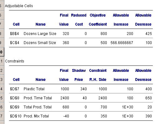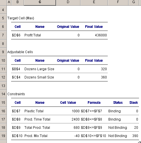 สิ่งที่ปรากฏใน Sheet ที่สร้างขึ้นใหม่ชื่อว่า Answer Report 1