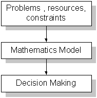 Model การปฏิบัติการในการทำสงคราม ฝ่ายเสนาธิการ (Cheif of operation) ถือว่าเป็นผู้รับผิดชอบ นำคำสั่งหรือคำบัญชาการจากผู้มีอำนาจตัดสินใจ ไปสู่การวางแผนการรบ การดำเนินการรบ ถ้าท่านเห็นรูปแบบการทำการรบของสหรัฐอเมริกาที่อิรัก หรือที่อัฟกานิสถาน จะพบว่า ประธานาธิบดี เป็นผู้มีอำนาจตัดสินใจ โดยอาจจะมีที่ปรึกษาทางการทหารเกี่ยวข้องหรือคอยเสนอแนะข้อคิดเห็น ฝ่ายดำเนินการรบก็จะมีกลาโหม เสนาธิการ และผู้บัญชาการกองกำลังรบ ระดับต่างๆกันออกไป เป็นผู้รับผิดชอบ เมื่อเราเข้าใจความหมายของคำว่า Operation แล้ว ถ้าเพิ่มคำว่า Research (วิจัย) เข้าไป ก็หมายถึง การนำเอาปัญหา ข้อจำกัด ในการปฏิบัติ มาสู่การวิเคราะห์ด้วยคณิตศาตร์ และสรุปออกมา เป็นตัวเลขเพื่อใช้ในการตัดสินใจ ดังนั้นองค์ประกอบที่สำคัญ ของ Operation research จะประกอบด้วย
