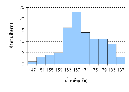 2. สถิติเชิงอนุมาน (Inferential Statistics) เป็นสถิติที่มีความสำคัญและถูกใช้มากกว่า ลักษณะที่สำคัญคือเป็นการศึกษาข้อมูลของกลุ่ม ตัวอย่าง แล้วนำผลสรุปไปประมาณหรือคาดการณ์ประชากร หรือเหตุการณ์ที่จะเกิดขึ้นในอนาคตทั้งนี้สามารถแยกย่อยลักษณะของ สถิติอนุมานได้สอง ลักษณะดังนี้ 2.1 การประมาณค่าพารามิเตอร์ (Parameter Estimation) ค่าพารามิเตอร์คือค่าที่บ่งบอกคุณลักษณะเฉพาะของประชากร เช่น. ค่าเฉลี่ย ค่าเบี่ยงเบนมาตรฐาน ซึ่งวิธีประมาณค่าพารามิเตอร์นี้ก็ยังสามารถแบ่งได้สองวิธีคือ - การประมาณการแบบบอกค่าเดียวหรือแบบจุดเดียว (Point Estimation) เช่น. ประมาณค่าน้ำหนักเฉลี่ยของชิ้นงานทั้งหมด (ประชากร)เท่ากับ 167.6 กรัม เป็นต้น โดยที่ค่าที่เราได้มานี้จะได้มาจากการวิเคราะห์ข้อมูลของกลุ่มตัวอย่างเท่านั้น ทำให้การประมาณค่าวิธีนี้มีโอกาสคลาดเคลื่อนมาก เพราะเราเองก็ไม่อาจรู้ค่าน้ำหนักที่แท้จริงชิ้นงาน (ประชากร)ได้ทุกตัว Variable N Mean Weight 100 167.61 จากตัวอย่าง เมื่อเราหาค่าเฉลี่ยของกลุ่มตัวอย่างได้เท่าไหร่ เราก็ใช้เป็นตัวประมาณค่ากลางของประชากรเลย µÑÇÍÂèÒ§ ¡ÒÃãªé Point estimation : ¤ÃÙÇÔªÒÀÒÉÒÍѧ¡ÄÉ ªÑé¹ÁѸÂÁÈÖ¡ÉÒ»Õ·Õè 4 (Á.4) âçàÃÕ¹áËè§Ë¹Öè§ ÍÂÒ¡·ÃÒºÇèÒ ¹Ñ¡àÃÕ¹ªÑé¹ Á.4 à¢éÒãËÁè»Õ¡ÒÃÈÖ¡ÉÒ¹Õé«Öè§ÁÕ·Ñé§ËÁ´ 10 ËéͧàÃÕ¹ (¨Ó¹Ç¹·Ñé§ËÁ´ 400 ) ¹Ñé¹ ¨ÐÁÕ¤ÇÒÁÃÙéÀÒÉÒÍѧ¡ÄÉÍÂÙèã¹ÃдѺ㴠¨Ö§ä´é¨Ñ´·Ó¢éÍÊͺ à¾×èÍ·Ó¡Ò÷´Êͺ áµè¤ÃÙ·èÒ¹¹ÕéàÅ×Í¡ãªéÇÔ¸ÕÊØèÁµÑÇÍÂèÒ§¹Ñ¡àÃÕ¹ÁÒËéͧÅÐ 5 ¤¹ ÃÇÁáÅéÇ 50 ¤¹ áÅéÇãËé·Ó¢éÍÊͺªØ´à´ÕÂǡѹ â´ÂÁÕ¤Ðá¹¹àµçÁ 100 ¤Ðá¹¹ »ÃÒ¡¯¼ÅÇèÒ ¹Ñ¡àÃÕ¹·Ñé§ËÁ´·Õèà¢éÒÊͺ ·Ó¤Ðá¹¹ ä´éÁÒ¡ºéÒ§¹éͺéÒ§ àÁ×èÍËÒ¤èÒà©ÅÕèÂáÅéÇ ä´é¤Ðá¹¹ 55 ¤Ðá¹¹ ¤Ø³¤ÃÙ·èÒ¹¹Õé¡çàÅÂÊÃØ»ÇèÒ ¹Ñ¡àÃÕ¹ ªÑé¹ Á4. »Õ¹ÕéÁÕ¤ÇÒÁÊÒÁÒöÀÒÉÒÍѧ¡ÄÉ ÍÂÙèã¹ÃдѺ »Ò¹¡ÅÒ§à·èÒ¹Ñé¹ - การประมาณค่าแบบบอกเป็นช่วง (Interval Estimation) เมื่อวิธีประมาณการแบบจุดมีโอกาสผิดพลาด ทั้งนี้ เพราะเมื่อเราไปเก็บตัวอย่างมาอีกกลุ่ม เมื่อหาค่าเฉลี่ยออกมาก็จะได้ไม่ตรงกับของกลุ่มตัวอย่างแรกหรอก และถ้าเราไปเก็บ ตัวอย่างมาหลายๆกลุ่ม ค่าเฉลี่ยของแต่ละกลุ่มก็เปลี่ยนไปทั้งได้มากกว่าและน้อยกว่า นั่นแปÅว่าเมื่อเรานำไปประมาณค่า เฉลี่ยของประชากร แต่ละครั้งก็จะได้ค่าไม่ตรงอยู่ดี แต่ถ้าสังเกตดูจะเห็นว่า ค่าเฉลี่ยของกลุ่มตัวอย่างหลายๆกลุ่มนั้นจะตก อยู่ในย่านๆหนึ่งเสมอ เราเรียกว่า Interval ดังนั้นแทนที่เราจะบอกเป็นค่าเดียว เราก็เปลี่ยนมาบอกเป็นย่านที่ค่าพารามิเตอร์ จะตกอยู่แทน แล้วเราก็คาดการได้ว่า โอกาสที่ค่าพารามิเตอร์จะอยู่ภายใน Interval นี้ด้วยระดับความมั่นใจเท่าไหร่ Variable N Mean 95.0% CI Weight 100 167.613 ( 165.871, 169.356) จากตัวอย่างจะมีการบอกเป็นช่วงความเชื่อมั่นว่า มั่นใจว่าค่ากลางขงอประชากรจะอยู่ภายในย่านนี้ 95 เปอร์เซนต์ จะห็นว่า ช่วงความเชื่อมั่นนี้จะบอกค่าต่ำสุดและสูงสุดมาให