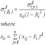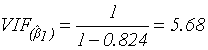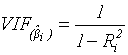 แสดงว่าค่า Variance ของค่าสัมประสิทธ์ตัวนั้นๆจะเพิ่มมากขึ้น (เฟ้อ) กว่าที่เป็นอยู่นี้หรือไม่ ขึ้นอยู่กับระดับความสัมพันธ์ของ X ตัวนั้น(ที่เปลี่ยนมามีฐานะเป็น Y ชั่วคราว) กับ X อื่นๆที่เหลือ จะมากน้อยเพียงใด เราเลยเรียกเทอมนี้ว่า ตัวชี้วัดความเฟ้อ ของ Variance ของค่าสัมประสิทธ์ หรือ Variance Inflation Factor (VIF) มีสมการดังนี้