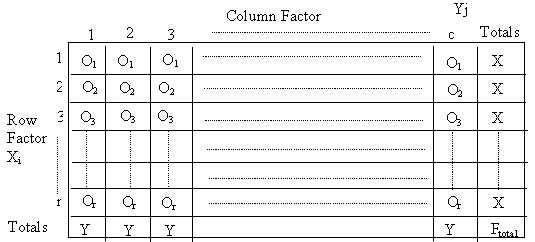 Ho:   Factor 1 ไม่ขึ้นอยู่กับ  Factor 2