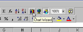 รูปที่ 1 ขั้นตอนที่ 2 ใช้ Mouse กดตรง Chart Wizard ดังรูปที่ 2