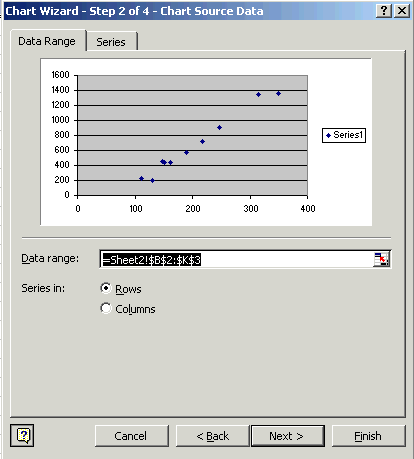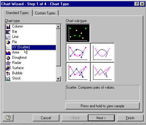 รูปที่ 2 ขั้นตอนที่ 3 เมื่อปรากฏหน้าต่างใหม่ขึ้นมาดังรูปที่ 3 ให้เลือก XY(Scatter) แล้วกด Next