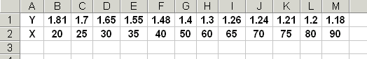 รูปที่ 11 เมื่อเลือกวิธี Exponential ใน Excel มี วิธีการทำ Polynomial regression model fitting อยู่หลายวิธี ในตัวอย่างนี้ผู้เขียนได้เปรียบเทียบให้เห็นความแตกต่างของ Model ที่ได้ ถึงจะมีข้อแตกต่าง แต่เมื่อนำไปใช้พยากรณ์ค่า Y แล้ว ก็จะได้ค่าที่ใกล้เคียงกันมาก สังเกตจากค่า R-Square เมื่อต้องตัดสินใจเลือก Model เราก็ดูความยุ่งยากในการนำไปใช้ เป็นตัวแปรที่สอง ถ้าหากเราคิดว่า R-Square ที่ได้ไม่แตกต่างกันมากนัก