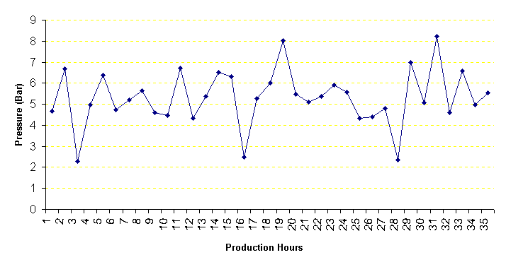 สาเหตุเพราะหยุดเก็บข้อมูลเร็วเกินไป จะต้องดำเนินการเก็บข้อมูลต่อไปเรื่อยๆ หรือไม่ก็ Process ในการผลิตยังไม่นิ่ง (Unstable) มีการเปลี่ยนแปลงไปมามาก จำเป็นต้องแก้ไขให้นิ่งเสียก่อน โดยการหยุดทำการเปลี่ยนแปลงใดๆในช่วงนี้ (เป็นเพียงข้อเสนอแนะจากประสบการณ์ของผู้เขียนเท่านั้น) Time Series Plot เป็นกราฟที่แสดงค่าในกระบวนการ( Process ) ใดๆ โดยเทียบกับเวลาที่เปลี่ยนแปลงไปเรื่อยๆ ใช้เพื่อบ่งบอกสถานะของสิ่งที่เราสนใจ เทียบกับเวลา มีประโยชน์ในการดูความเปลี่ยนแปลงของกระบวนการ เช่น กระบวนการผลิต การติดตามอาการของคนไข้ เป็นต้น