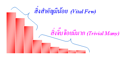 Pareto Chart Vilfredo Pareto ( 1848-1923 ) เป็นนักเศรษฐศาสตร์และสังคมศาสตร์ ที่เชี่ยวชาญในการใช้เทคนิคทางคณิตศาสตร์ มาวิเคราะห์ปัญหาทางเศรษฐศาสตร์ โดยทฤษฏีที่ได้รับการยอมรับอย่างสูงคือ "Circulation of Elites" เขาสำเร็จการศึกษาจาก คณะวิศวกรรมศาสตร์ สาขาโยธา จาก University of Turin ประเทศอิตาลี ขณะกำลังศึกษาอยู่เขาอุทิศเวลาถึง 2 ปี เต็มให้กับความรู้ทางคณิตศาสตร์ซึ่งเป็นพื้นฐานสำคัญที่ทำให้ประสบ ความสำเร็จทางวิชาการในเวลาต่อมา เขาทำงานเป็นวิศวกร ระหว่างปี 1870- 1893 และใช้เวลาว่างศึกษาวิชาปรัชญาและการปกครอง เขาสร้างชื่อเสียงจาก Law of income distribution ที่ได้จากการนำสูตรทางคณิตศาสตร์มาอธิบายลักษณะการกระจายรายได้ โดยเขาพบว่า การกระจายตัวของรายได้ของผู้คนในอิตาลีไม่เป็นการกระจายแบบสุ่ม (Random) หากแต่การกระจายดังกล่าวเป็นรูปแบบเฉพาะที่ชัดเจนและปรากฎรูปแบบดังกล่าวมาตั้งแต่ในอดีต และพบว่าลักษณะการกระจายดังกล่าวได้ปรากฎอยู่ทั่วไปในทุกๆประเทศทั่วโลก หลังจากที่ Vilfredo Pareto ค้นพบว่า คนรวยในอิตาลีเพียงไม่กี่คนเป็นเจ้าของทรัพย์สินส่วนใหญ่ในประเทศ แต่คนที่เหลือส่วนใหญ่อีกหลายล้านคนกลับมีทรัพย์สินรวมกันเป็นส่วนน้อยเท่านั้น เช่นเดียวกันครับ รายได้ส่วนใหญ่ของประเทศเกิดจากเจ้าของกิจการเพียงไม่กี่รายเท่านั้น ด้วยเหตุนี้เขาจึงให้นิยามปรากฏการณ์ดังกล่าวว่า "Vital Few Trivial Many"