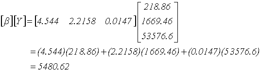 ขั้นตอนที่ 2 คำนวณหาค่าเพื่อแทนลงในสมการ จากตารางที่ 1 เราจะทำการคำนวณค่าต่างๆตามสมการทั้งสาม โดยใช้ตาราง Excel ช่วยในการคำนวณ ซึ่งจะไดดังตารางที่ 2