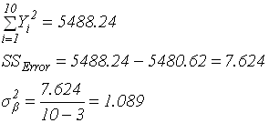 เมื่อ (sbi )2 : Estimated Standard Error Cbi : ค่าที่ได้มาจาก Inverse matrix [A]-1 ตามแนวทะแยงมุม ที่ตรงกับ bi นั้นๆ n : No of observation p : No of regressor (b0 , b1 .... bk ) ตัวอย่างนี้ คือ 3 จากตารางที่ 2