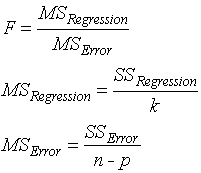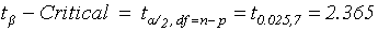 ค่า degree of freedom หาได้จาก Total = n-1 = 10-1 = 9 Error = n - p = 10 - 3 = 7 Regression = k = Total - Error = 9 - 7 = 2
