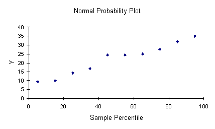 จากกราฟ การเรียงตัวของจุดค่า Y เทียบกับ Percentile เป็นแนว แม้จะไม่เป็นเส้นตรงเสียทีเดียว แต่สามารถยอมรับได้ว่าเป็น Normal distribution ได้ - Independence