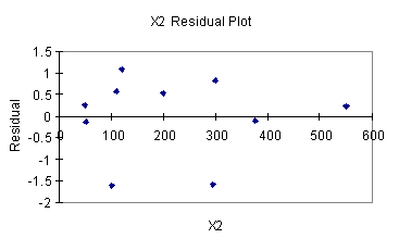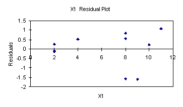 เมื่อทำการพล้อต Residual กับค่า X (Fit) ทั้งสอง (X) พบว่าจุดไม่มีลักษณะอยู่ด้านบวก หรือลบตลอด หรือเป็น 0 ตลอด หรือกว้างออกตลอด เมื่อค่า X สูงขึ้นหรือต่ำลง เราพอจะอนุมานได้ว่า Residual ตลอดย่านค่า X ไม่ได้แตกต่างกันจนเกินเหตุ นั่นคือการเพิ่มหรือลดค่า X ไม่ได้ทำให้ความคลาดเคลื่อนหรือ Error ของ Regression model เปลี่ยนไปจนเกินเหตุ เราจะถือว่าผ่านเงื่อนไขนี้ (แยกวิเคราะห์แต่ละ X ) จะเห็นว่า แม้จะมีตัวแปรต้น(อิสระ) หรือ X มากกว่าหนึ่งตัว แต่เราก็ยังใช้วิธีวิเคราะห์เหมือนกัน แตกต่างกันเฉพาะรายละเอียดเท่านั้น