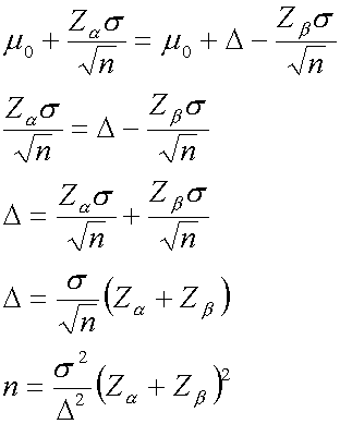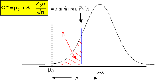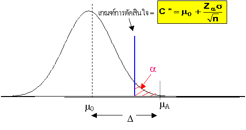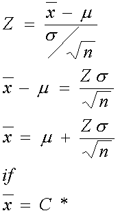การคำนวณหาขนาดของสิ่งตัวอย่าง เราจำเป็นต้องกำหนดเกณฑ์การตัดสินใจ C* โดยอ้างอิงกับทฤษฎี Confidence Interval โดยที่